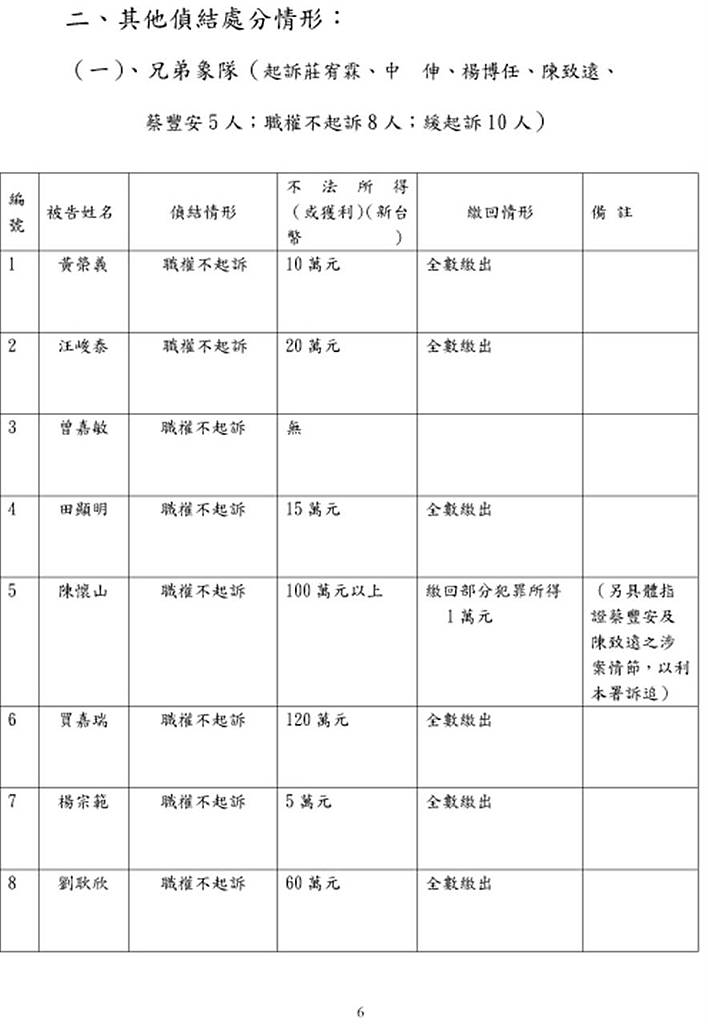 [筆記]2010.2.10.職棒簽賭起訴一覽表 ---黑象 / 黑熊