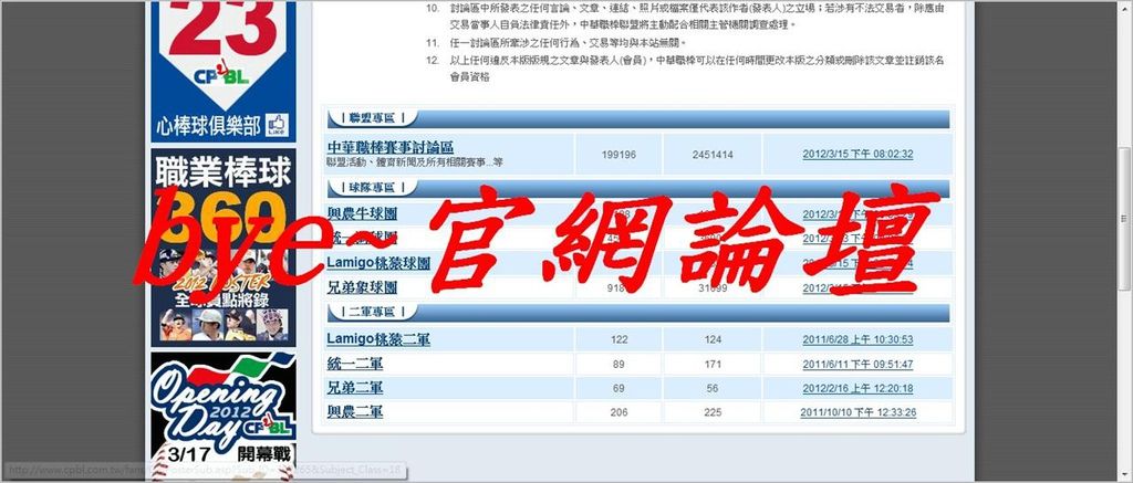 中職官網論壇3月20日將關閉