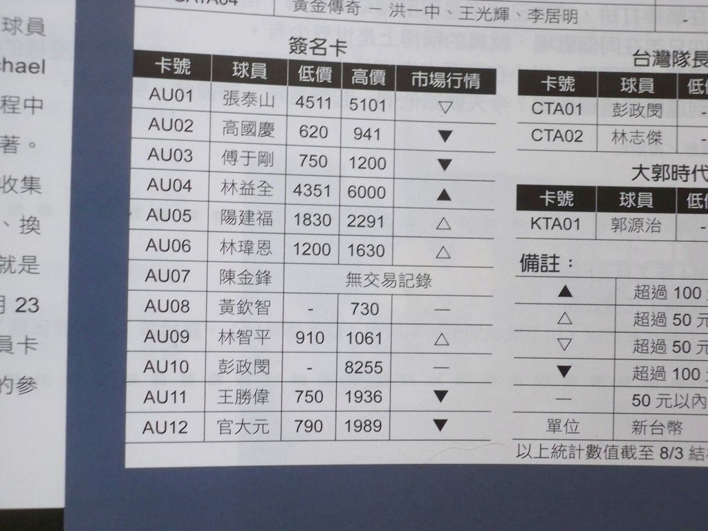 雜誌球卡價位表